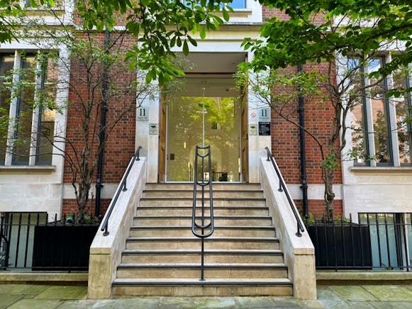Arranged at Upper Gnd Floor level, the space is accessed directly off the main building reception, and is divided to form a separate suite of four meeting rooms, with a client reception/waiting area on one side, and the main offices on the other side of the reception, comprising of a mix of open plan and private office space, a board room, breakout areas and lounge space, 3 booths, a kitchenette and separate comms room.